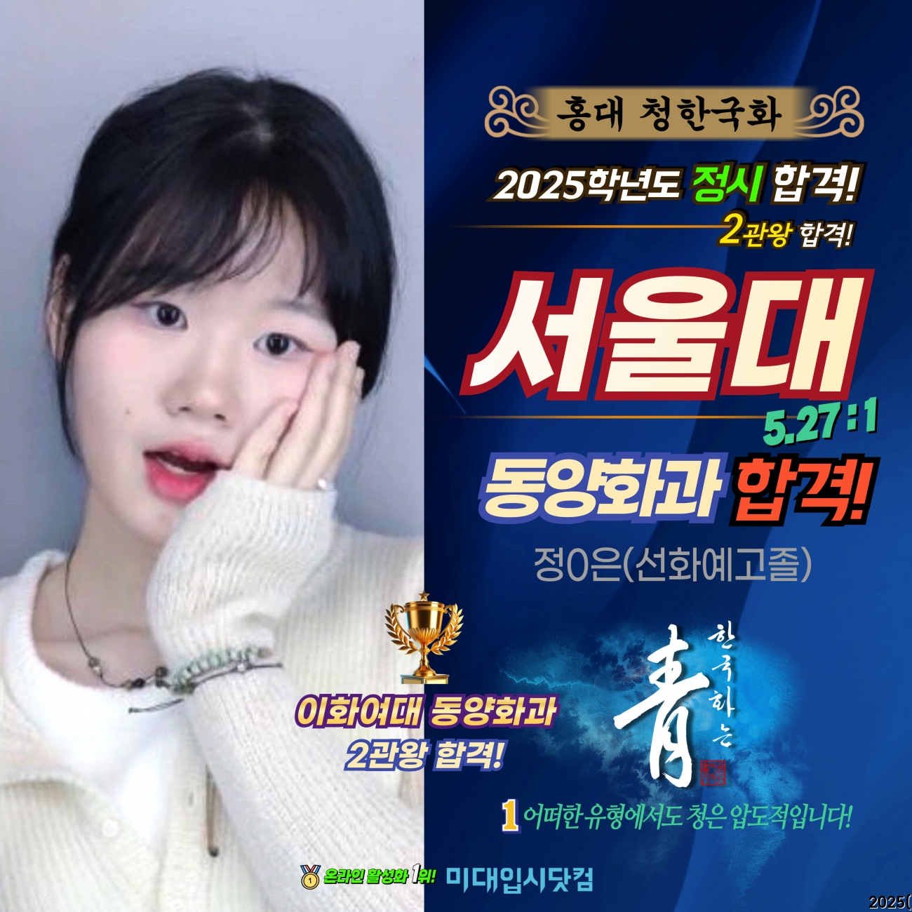 ¹Ì´ëÀԽôåÄÄ Çհݼö±â - 2025Çг⵵(Á¤½Ã) ¼­¿ï´ëÇб³ µ¿¾çÈ­°ú ÇÕ°Ý! Á¤0Àº(¼±È­¿¹°íÁ¹) - È«´ë û ¹Ì¼úÇпø