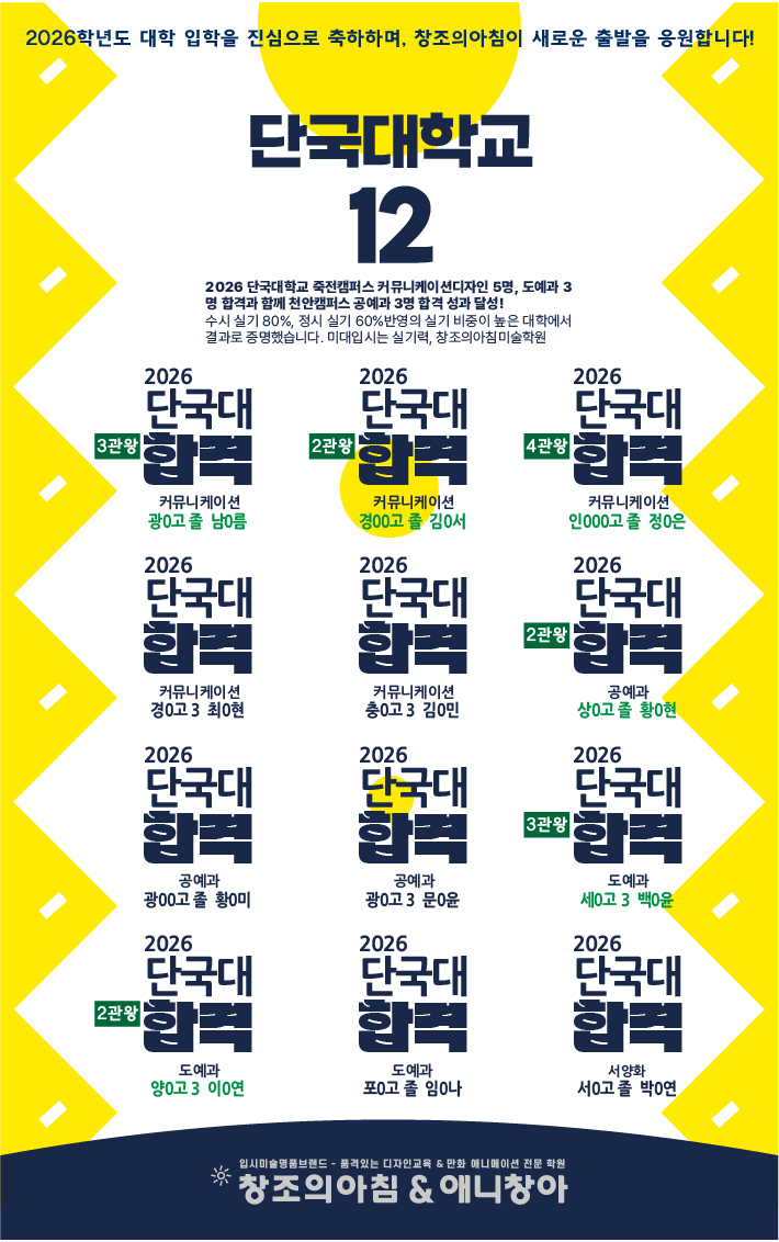 ÇÕ°ÝÀÚ ¸í´Ü | âÁ¶ÀǾÆÄ§ ¹Ì¼úÇпø 2026 ´Ü±¹´ë ÇÕ°Ý