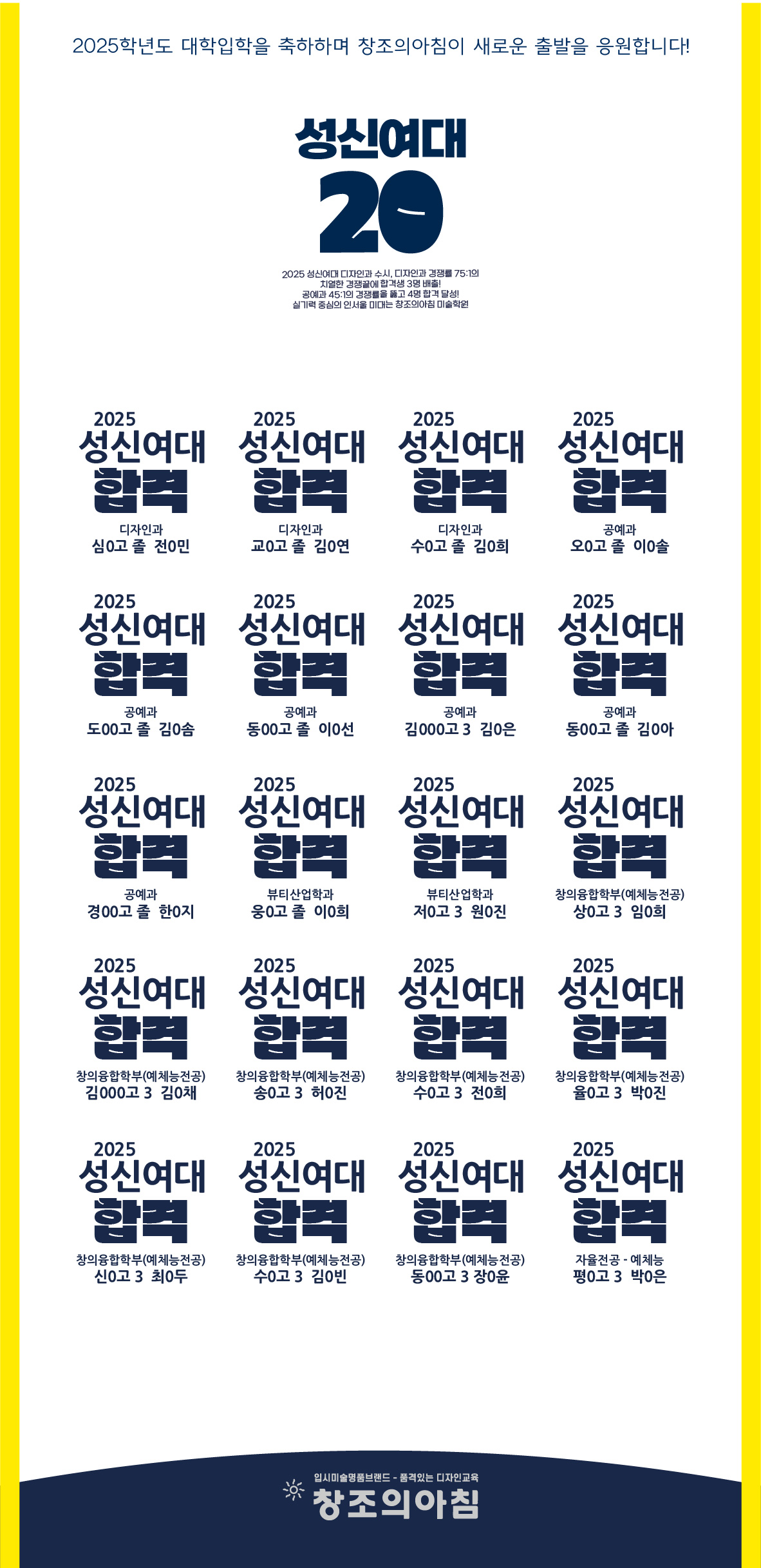 ÇÕ°ÝÀÚ ¸í´Ü | âÁ¶ÀǾÆÄ§ ¹Ì¼úÇпø 2025 ¼º½Å¿©´ë ÇÕ°Ý